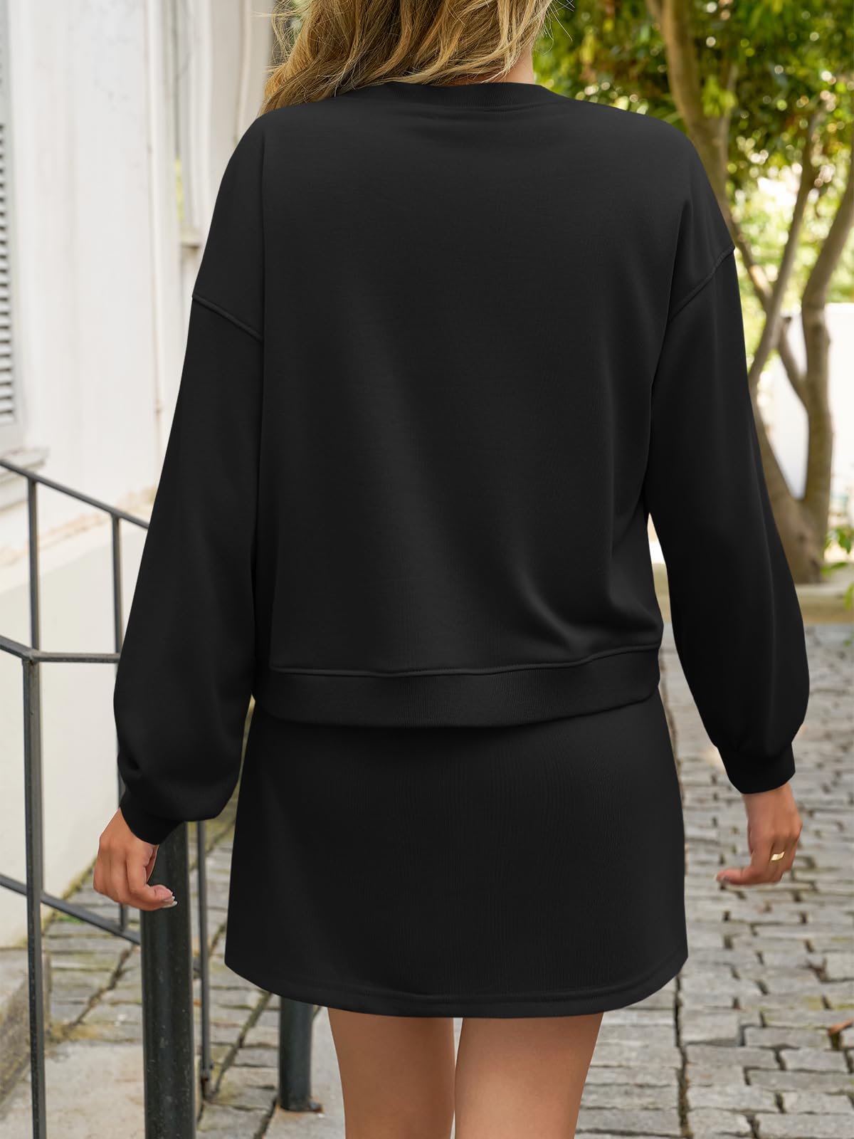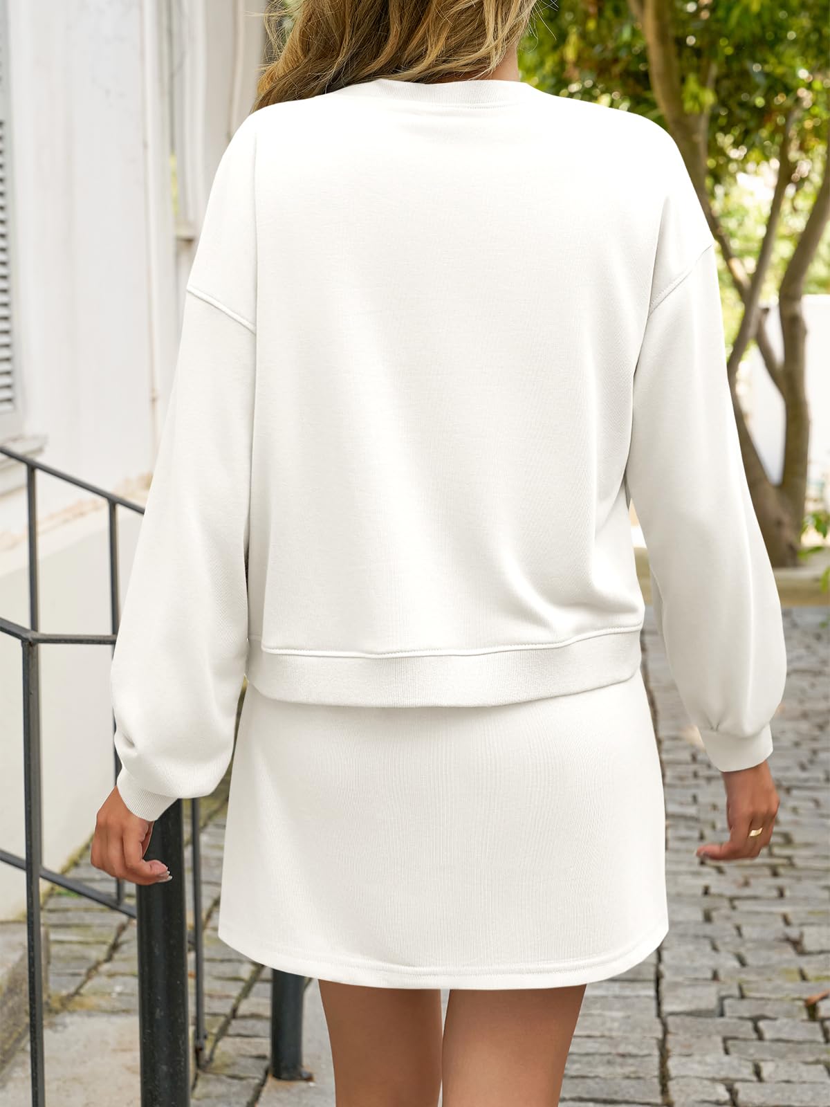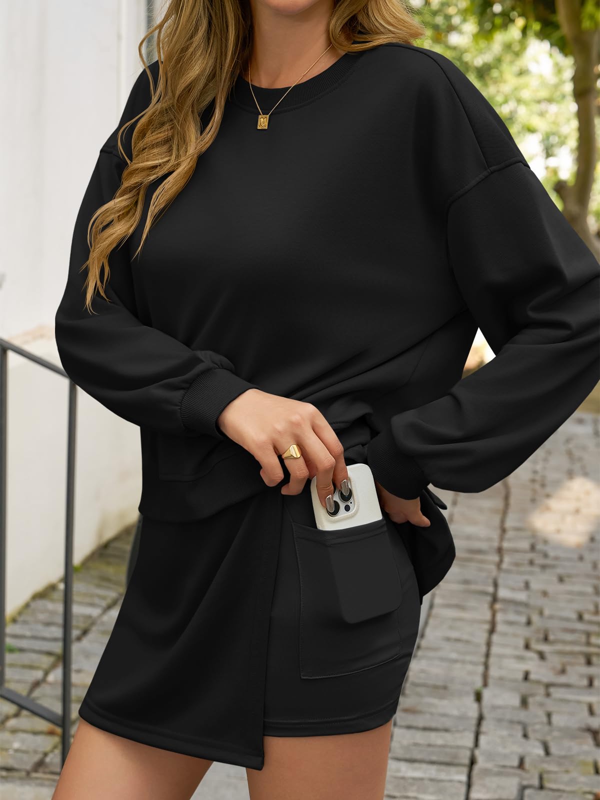 Fisoew 2 Piece Sets For Women Cotton Workout Sets Sweatshirt Top High Waisted Lined Split Athletic Skirt Set