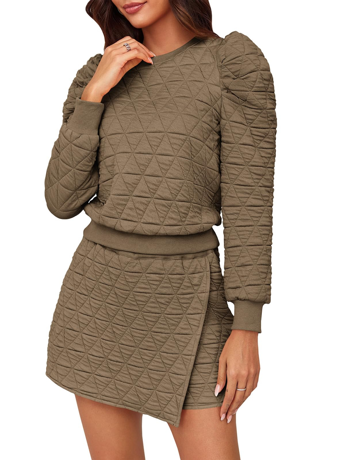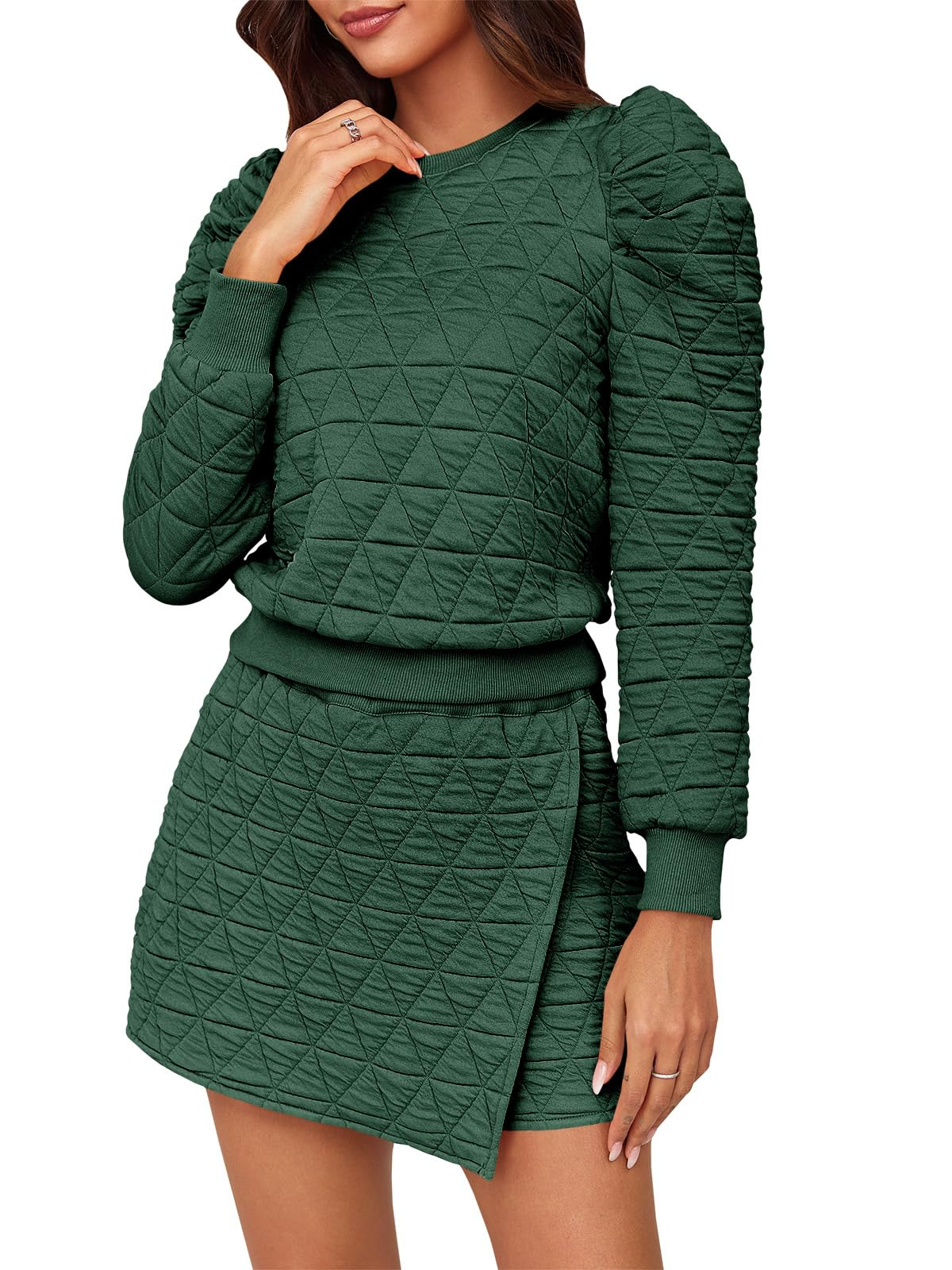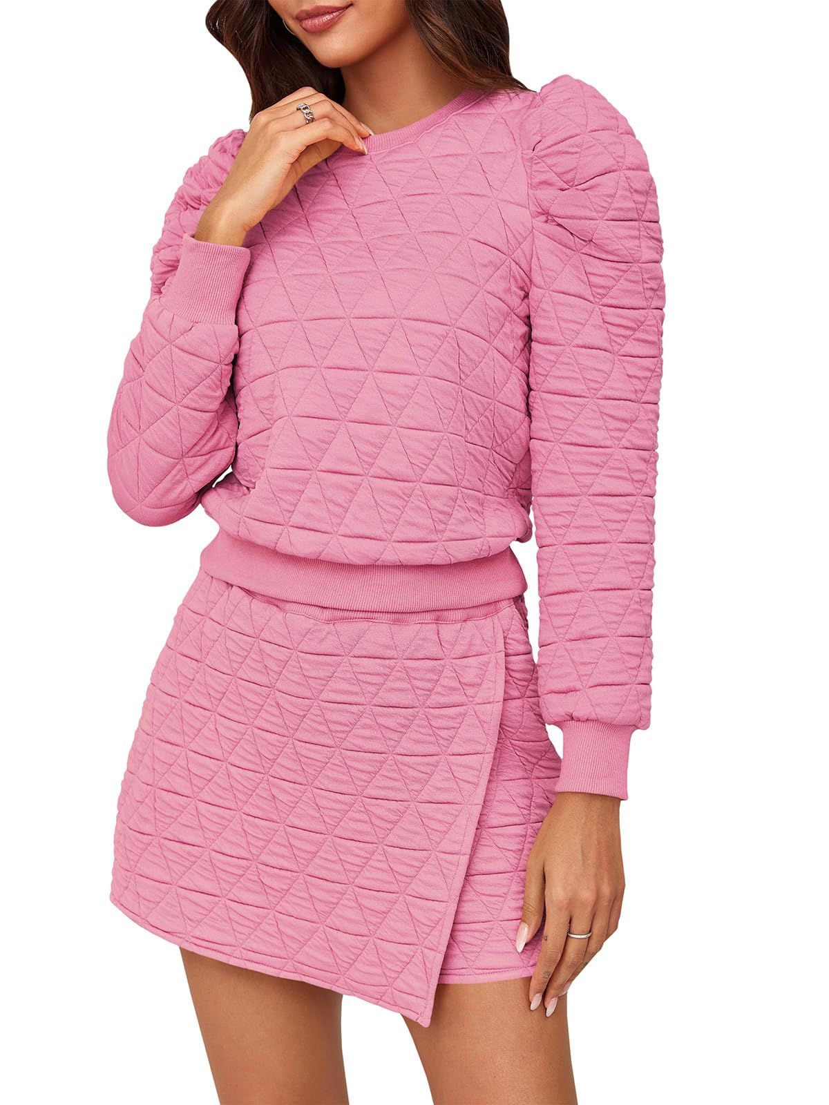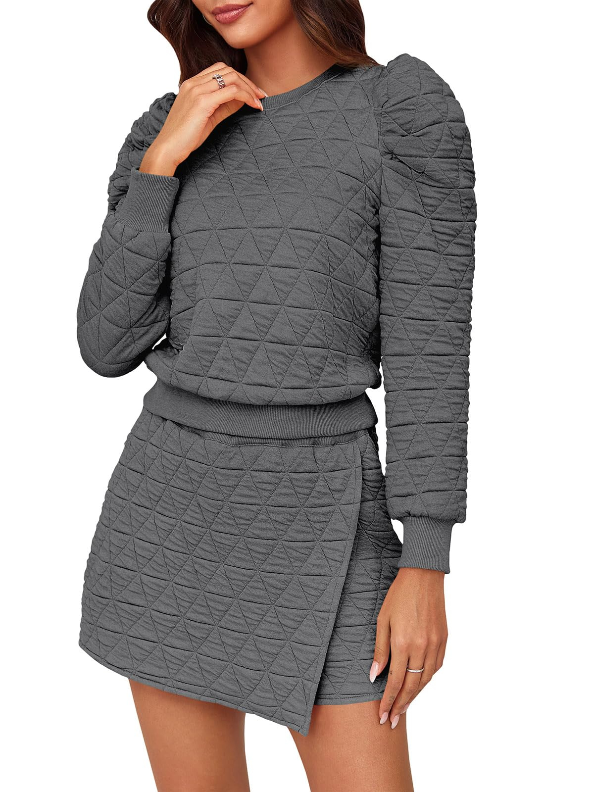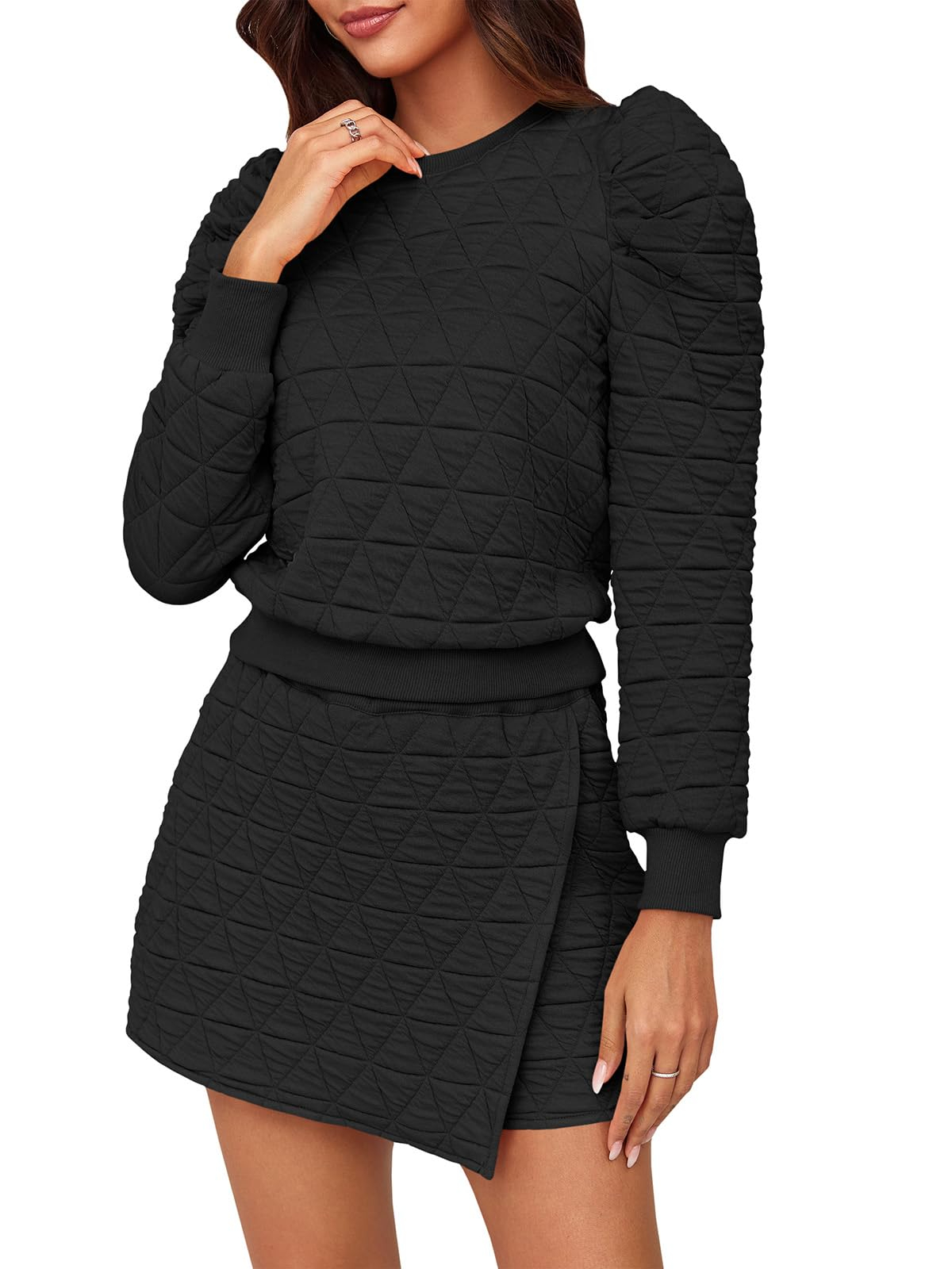• Sets Chic Design: The sweatshirt's long sleeves, adorned with delicate ruffles, provide an extra layer of coziness and lend a touch of playful charm. Skort sets women 2 piece outfits with the pattern that infuses a sense of luxury, making it a statement piece even for relaxed settings. Meanwhile, the skorts—a clever fusion of shorts and a skirt—feature an eye-catching argyle print. The combination creates a sweater skort set that feels as good as it looks